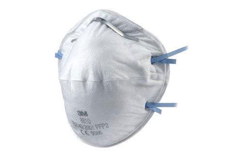 Atemschutz gegen Staub und Nebel. Konvexe Form mit zwei Riemen, Nasenpolster und Nasenbügel für ein angenehmes Tragegefühl.